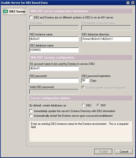 Пытаюсь настроить связку Domino c DB2