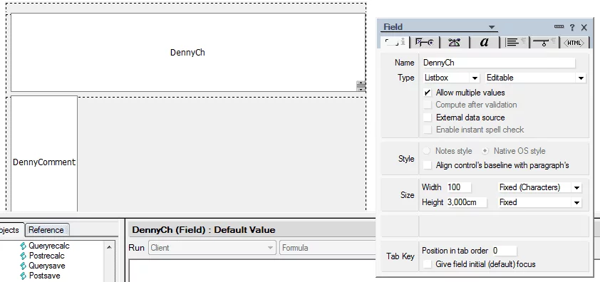 В Notes Designer, где формы редактировать можно. Есть Help, там можно почитать про разные поля и формулы и функции и классы.
