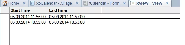 сделай вьюху (обычную, название xview), в ней две колонки, одна называется StartTime, вторая EndTime, содеожание дата/время (соотвественно даты старта и даты конца). далее нашлёпай пару документов которые в этой вьюхе будут просматриваться, после этого можешь посмотреть что будет в хпагесе. Как видишь (надеюсь) стоит restservice он для календаря готовит данные (на основе вьюхе).