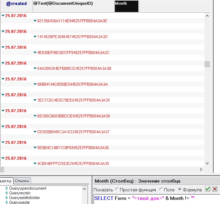 Форма - "ХХХ-сут.сводка", вписываю вместо "<твой док>". И Лотус начинает ругаться, не принимает формулу: