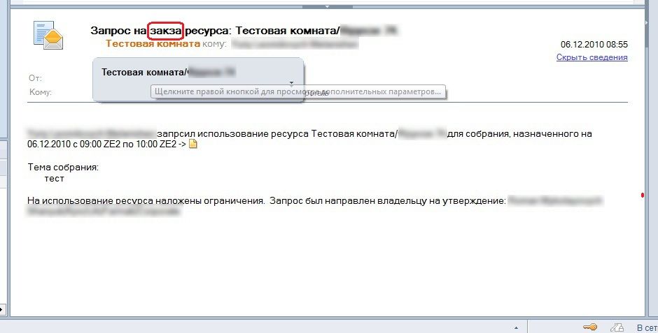 Резервирование ресурсов: ошибка в слове ЗАКАЗ в сабжекте сообщения - "Запрос на закза ресурса"...