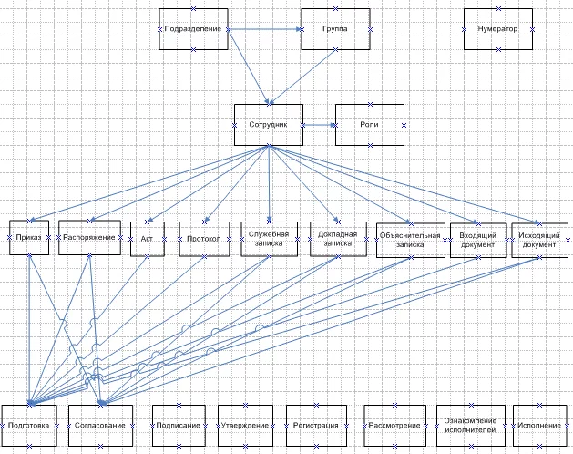 Начал составлять схему данных. Столкнулся с проблемой. Стрелок уж слишком много. Можно ли в блоках писать через запятую? (Приказ, распоряжение) и (Служебная, докладная, объяснительная записки) и (Акт, протокол), т.к. имеют общий маршрут?