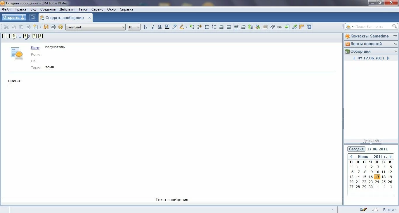 Имеется такая проблема: почтовый клиент Lotus 8.5.1 FP3, система win 7 prof x64. Так вот, при попытке создания нового письма некорректно отображаются поля "кому", "копия" и все что ниже, а также отсутствуют кнопки "отправить", "опции доставки", вобщем вся верхняя панель, скрин прилагается. Что интересно, если эту же базу открыть с другой машины, например в администраторе на сервере - все отображается как надо. Почтовую базу fixup-ом проверял, переустановку клиента тоже пробовал. Есть какие-то мысли?