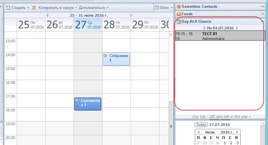 В Lotus Notes 8.5.3 есть справа "Обзор дня" из календаря (англ название Day-At-A-Glance).