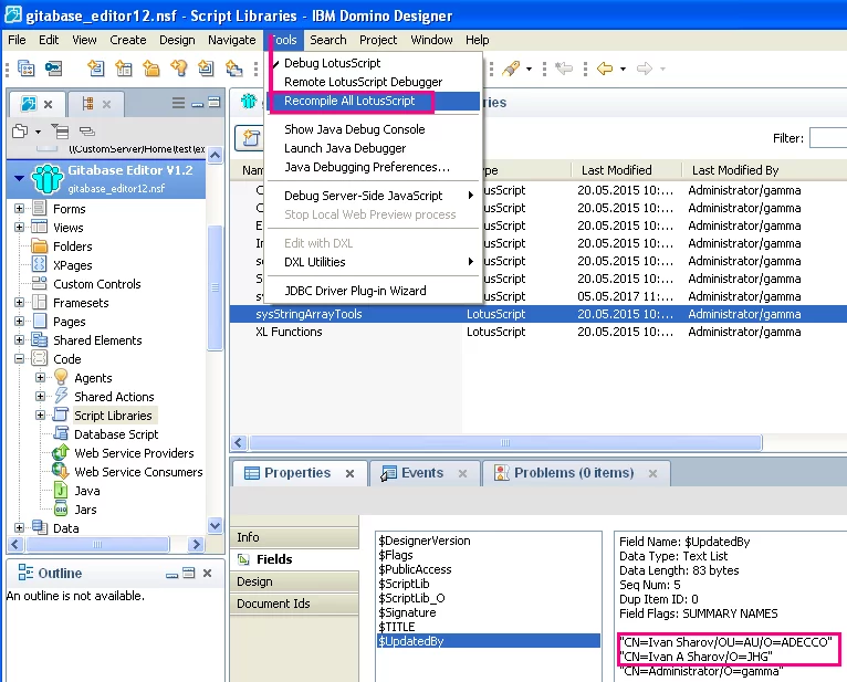Попробуй из Designer R10 выполнить "Recompile All LotusScript"
