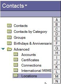 открой локальную адресную книгу, там есть виды с документами настроек. один из них отображает места вызова (Locations).