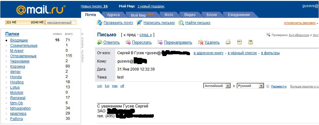 Ivanov Ivan Ivanovich (альтернативное имя Иванов Иван). Запускаю клиент под админом. Создаю письмо. выбираю из адресной книги Иванов Иван. Отправляю. захожу под Ивановым. У него письмо от Admin, а не от Админа.