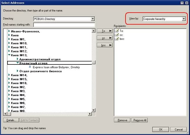 Но загвоска состоит в том, что люди дргу друга не знают, а адресная книга есть только своего учреждения! А нужна еще и другого, для удобства!