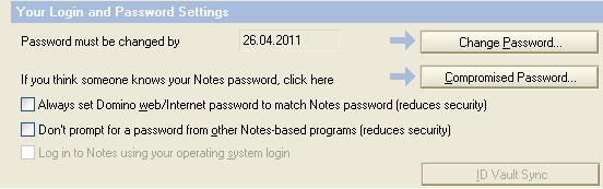 Вопрос следующий: в клиенте есть возможность ставить синхронизацию лотусового пароля и пароля для входа в систему(File-Security-User Security-Security Basics-). Но дело в том, что эта опция закрыта. Никто не подскажет как разрешить пользователю использовать данную возможность? Думал, что это возможно при инсталляции клиента или в настройках в учетке в адресной книге, но ничего подобного там не нашел.