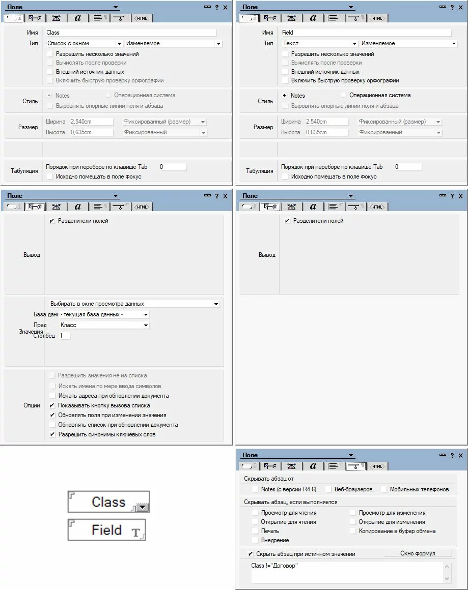 В форме всего 2 поля: "Class" и "Field".