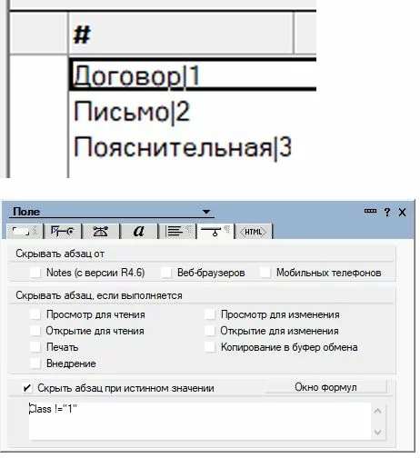 Как заставить работать скрытие/отображение второго поля когда тип первого поля: "Список с окном - Выбирать в окне просмотра данных"?