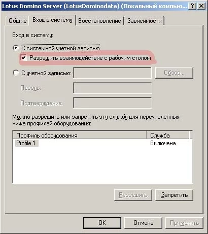 потом в свойствах службы снимаешь галку "Разрешить взаимодействие с рабочим столом"