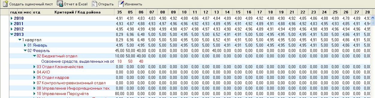 В лотусе есть база в которой есть страница на которой происходит выбор критерия и оценки для него (куча числовых комбобоксов на выбор от 1 до 5 - оценки)