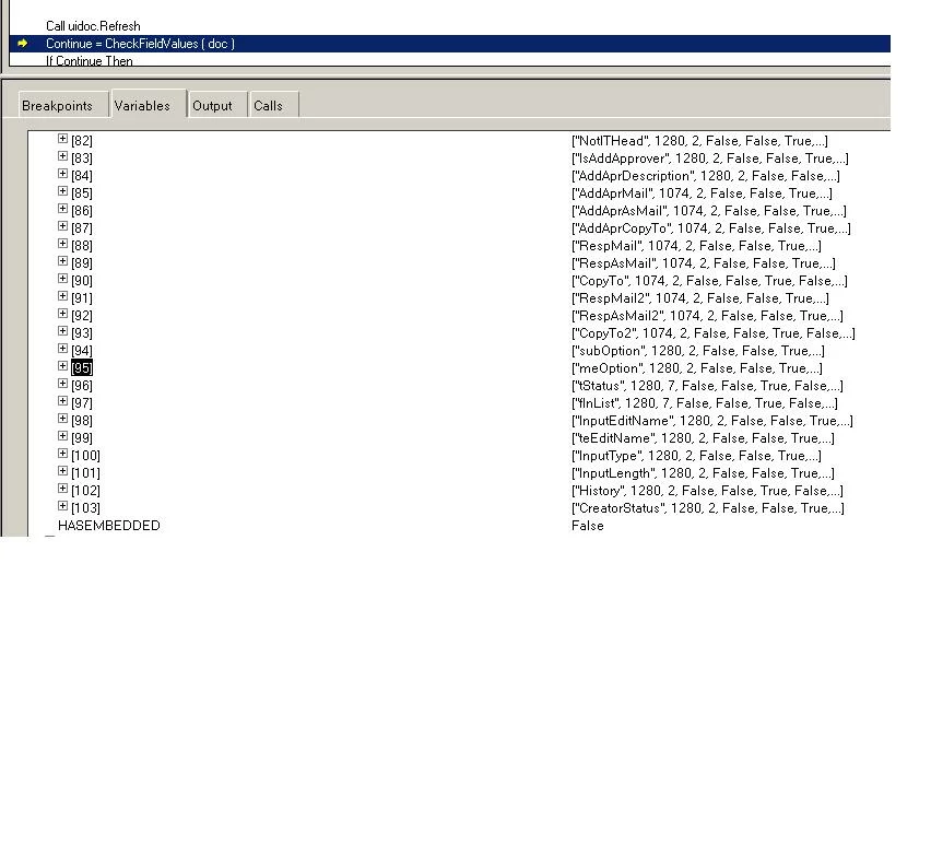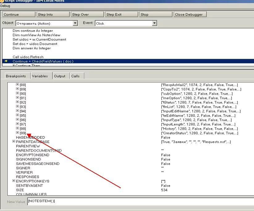 Обратите внимание на количество Item у меня 103 (нумерация идет с 0) а у пользователя 99 (т.е. всего 100 полей)